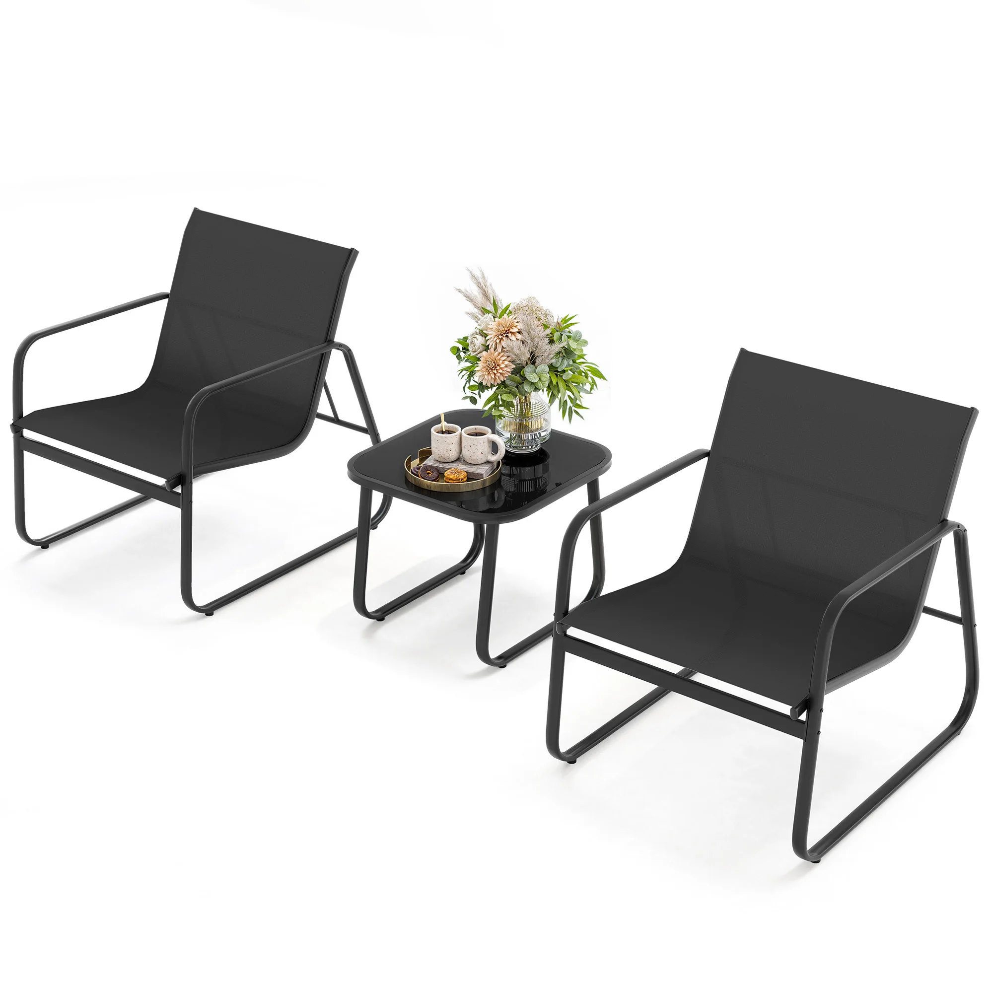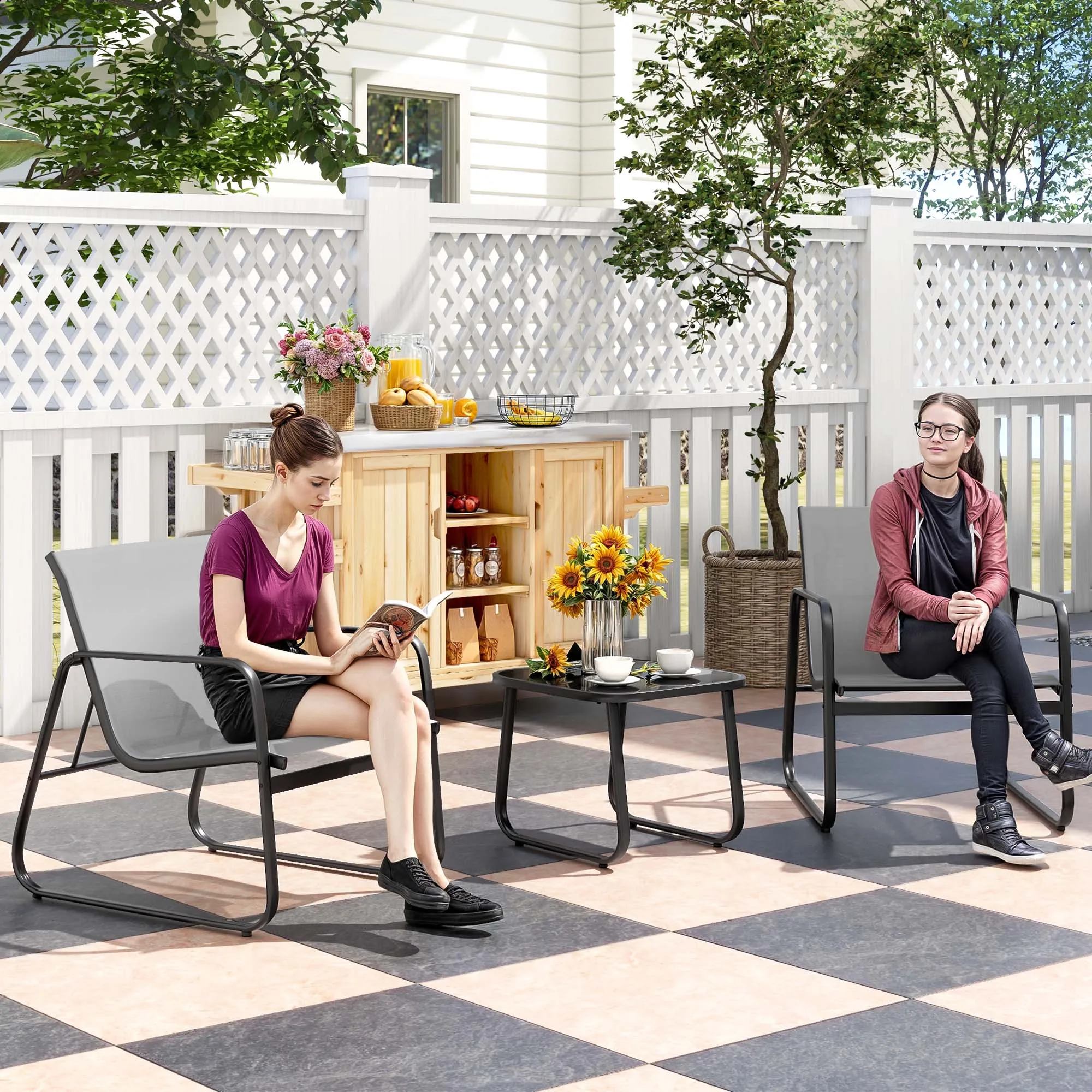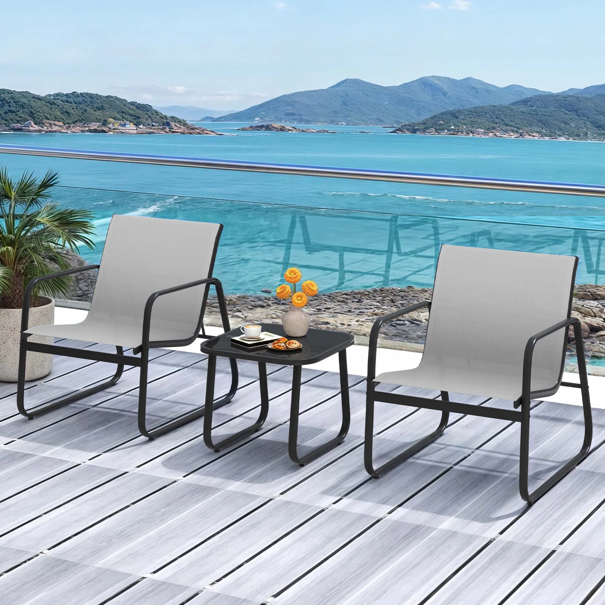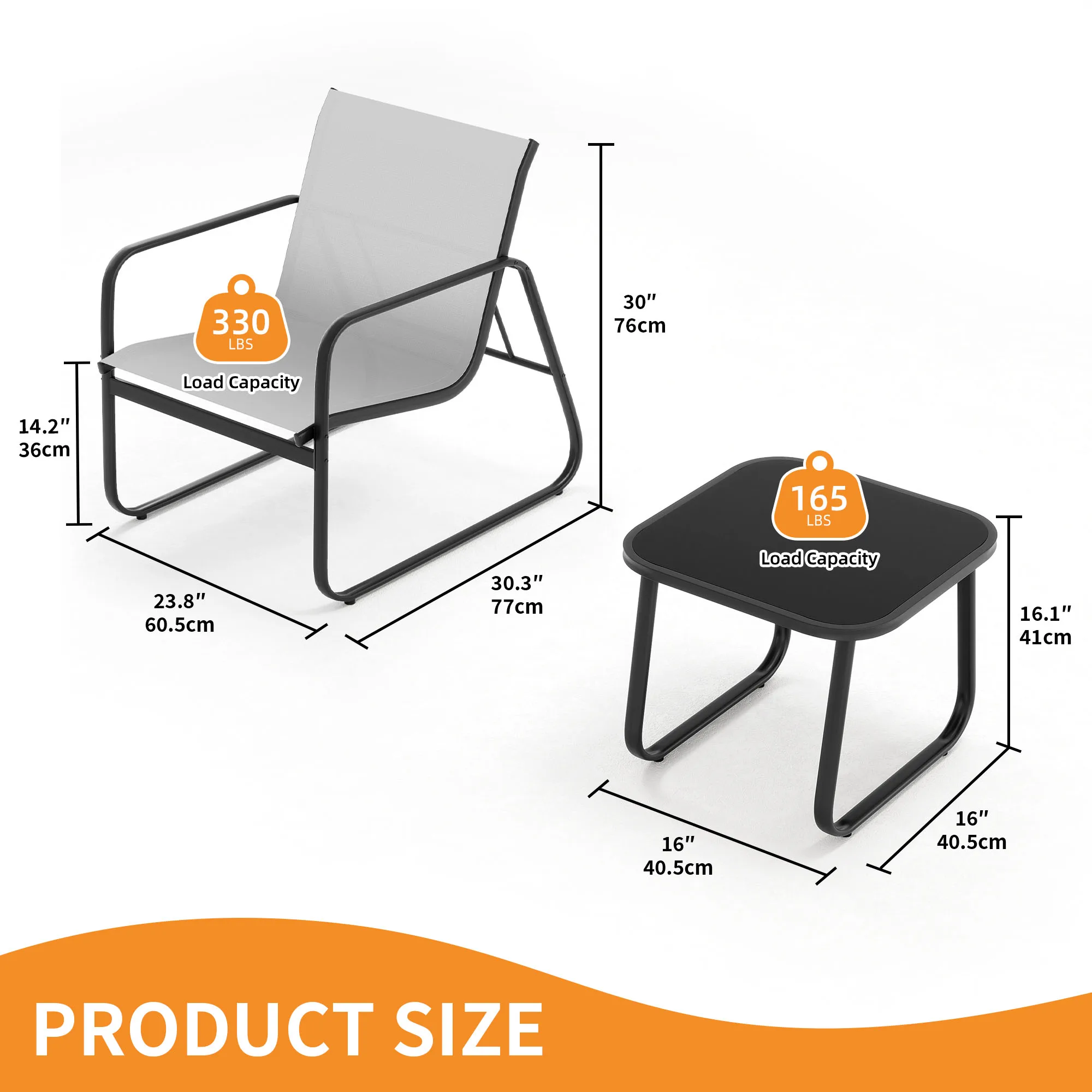 Perfect for Outdoor Lounging: Transform your outdoor space into a cozy retreat with this 3-piece set. Whether you're enjoying a morning coffee or hosting a small gathering with friends, the comfortable chairs and matching table provide a perfect spot for outdoor lounging and dining.