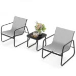 Space-Saving and Versatile Design: Ideal for smaller outdoor areas, this compact set is versatile and space-saving. The two chairs and table can be easily arranged to fit your space, making it a practical solution for balconies, patios, or gardens where space is limited.
