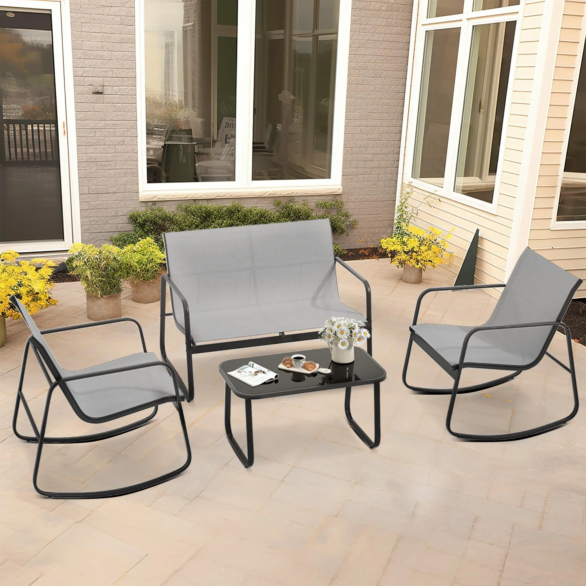 4 Pieces Patio Furniture Set Outdoor Conversation Textilene Fabric Chairs + Table