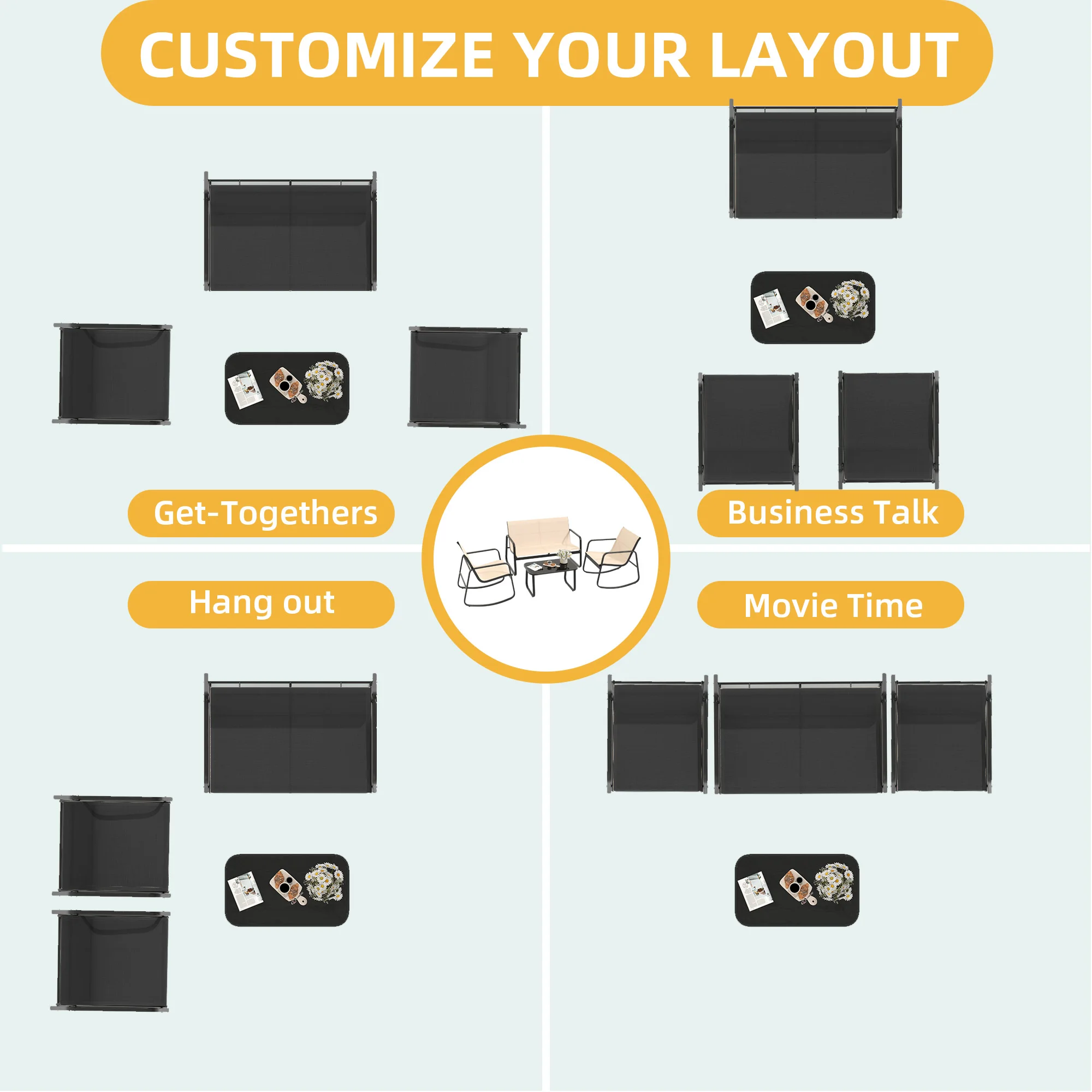 Be the first to review “4 Pieces Patio Furniture Set Outdoor Conversation Textilene Fabric Chairs + Table”
