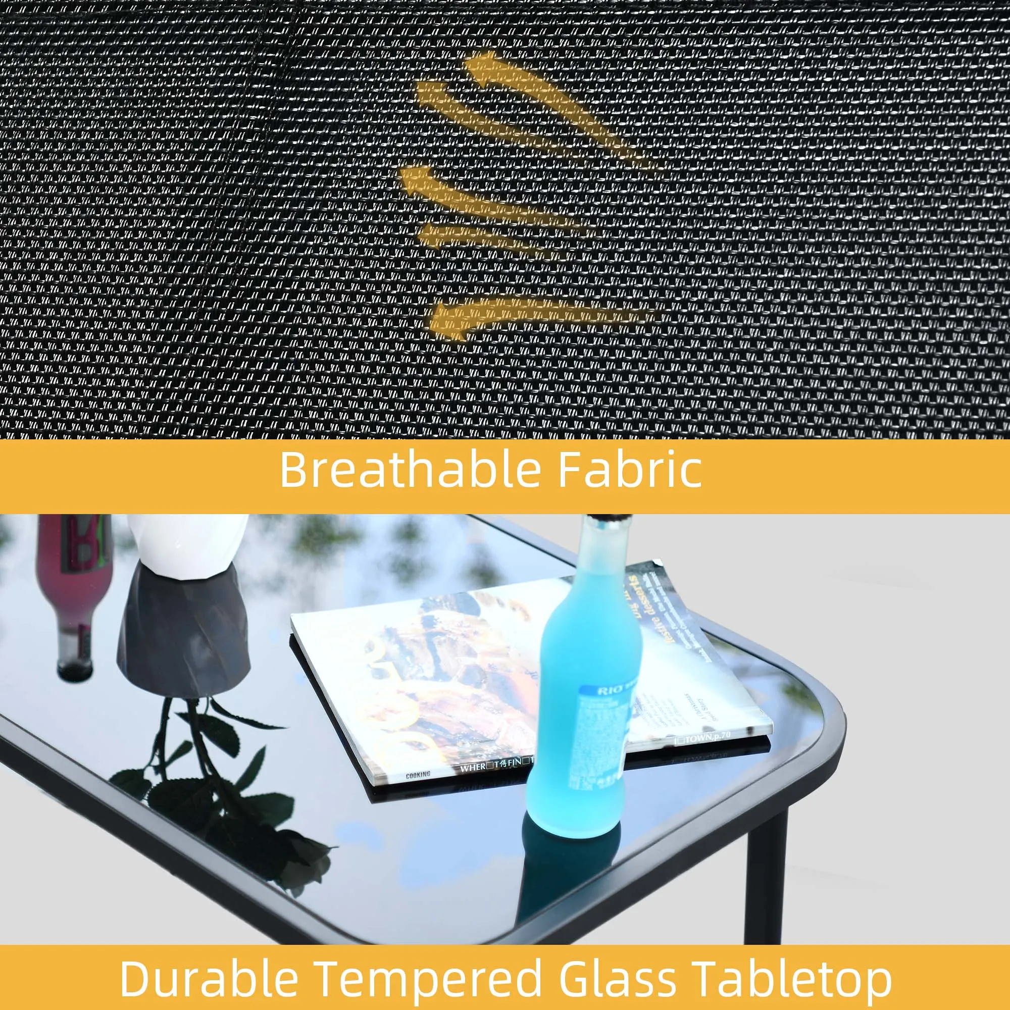 Supreme Comfort: Textilene fabric conforms better to the body, providing a more comfortable seating experience; This patio set feature curved armrests and tabletop edges, reducing the risk of accidents and ensuring a worry-free experience for you and your loved ones.