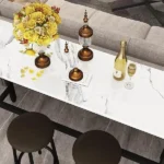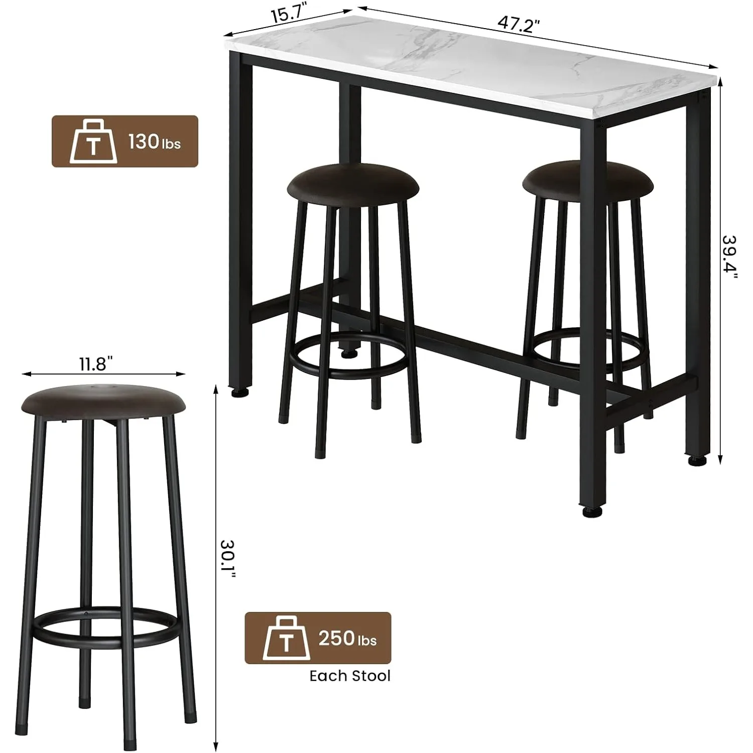 - ☕【High Quality】The smooth marble pattern table top make it easy to clean and durable metal legs ensure its sturdy and strong support. The stools are equip with soft cushions and high quality leather which provide a comfortable seating experience.