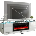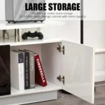 - High gloss entertainment center top and front doors with matte white body show luxury and modernity. LED kit includes 12 changeable colors and 36 kinds of color combinations to custom a personalized dazzle lighting atmosphere and unique experience